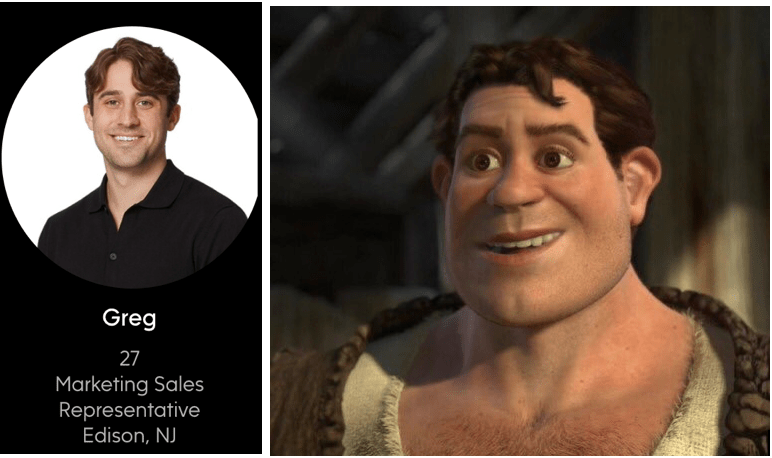 We need to talk about Greg’s hair… Greg has the haircut Harry Potter would have had if he had an ounce of marketing nous and wanted to cash in on “the boy who lived” bit by prominently displaying his scar between curtains of luscious hair (told you I was over reliant). Unfortunately, the only thing I think Greg was “the chosen one” for, is the male model they used to mock up Shrek’s human character… Don’t see this guy and Katie finding their happily ever after and it’ll be back to the swamp for Greg.